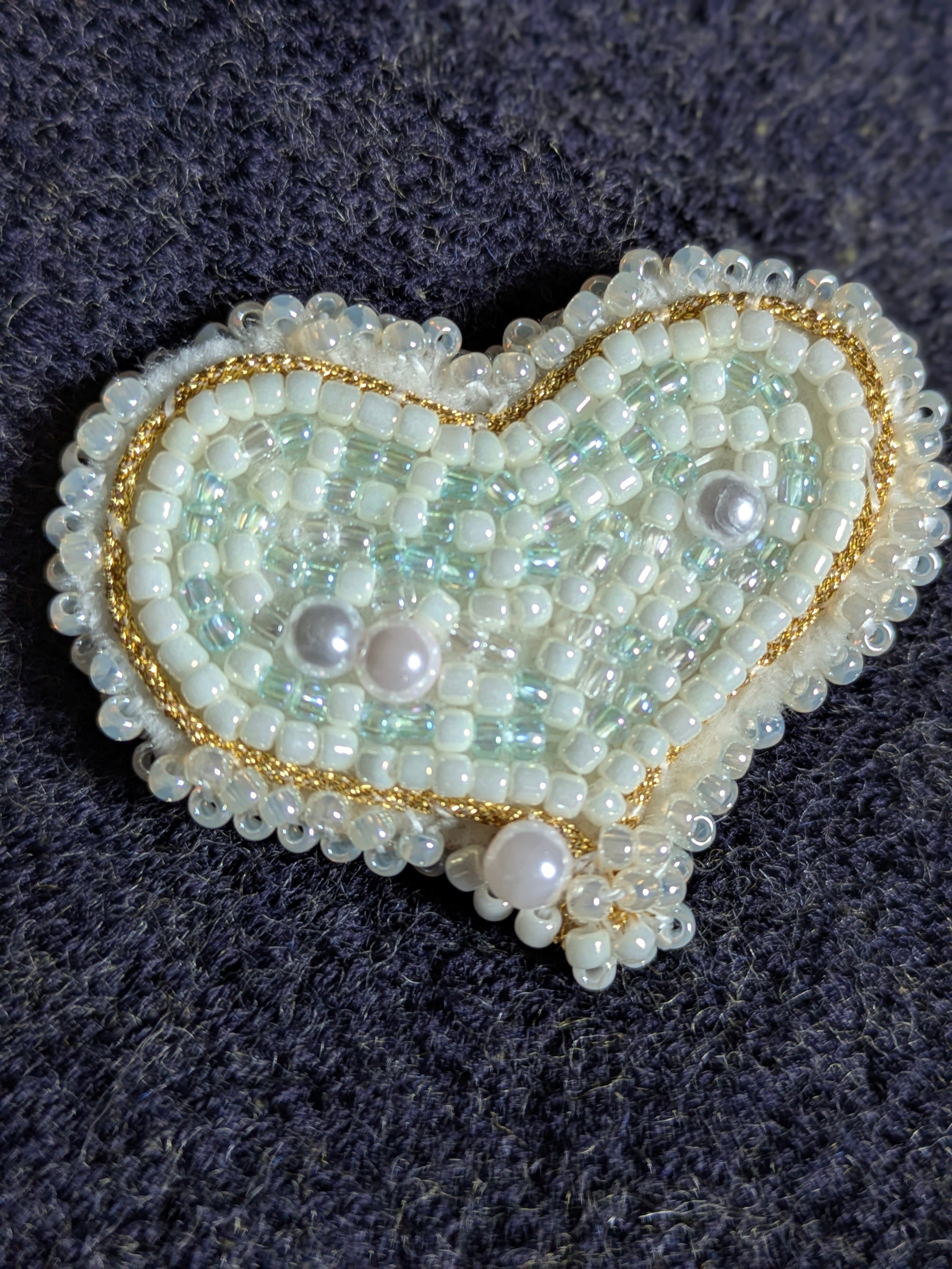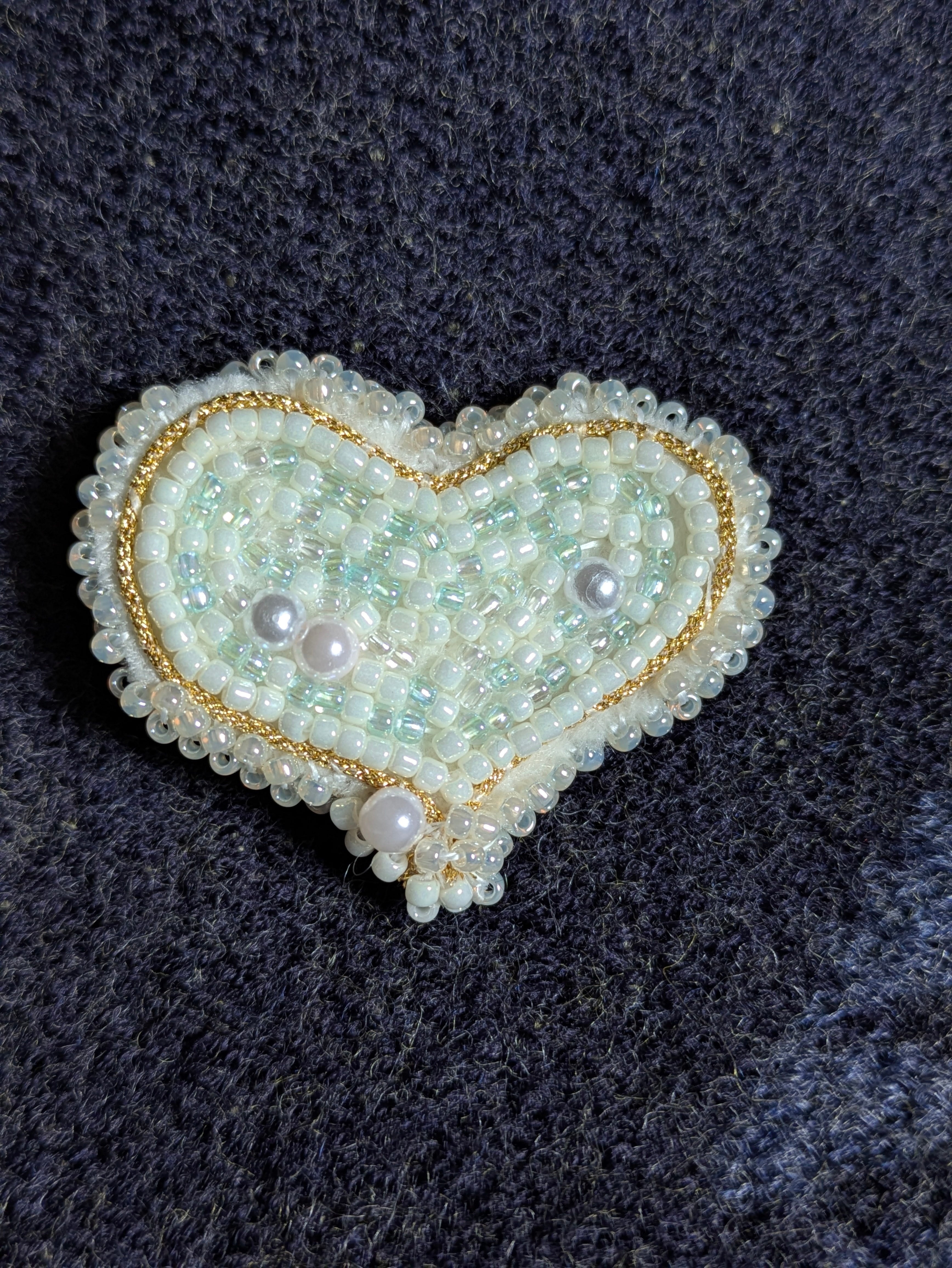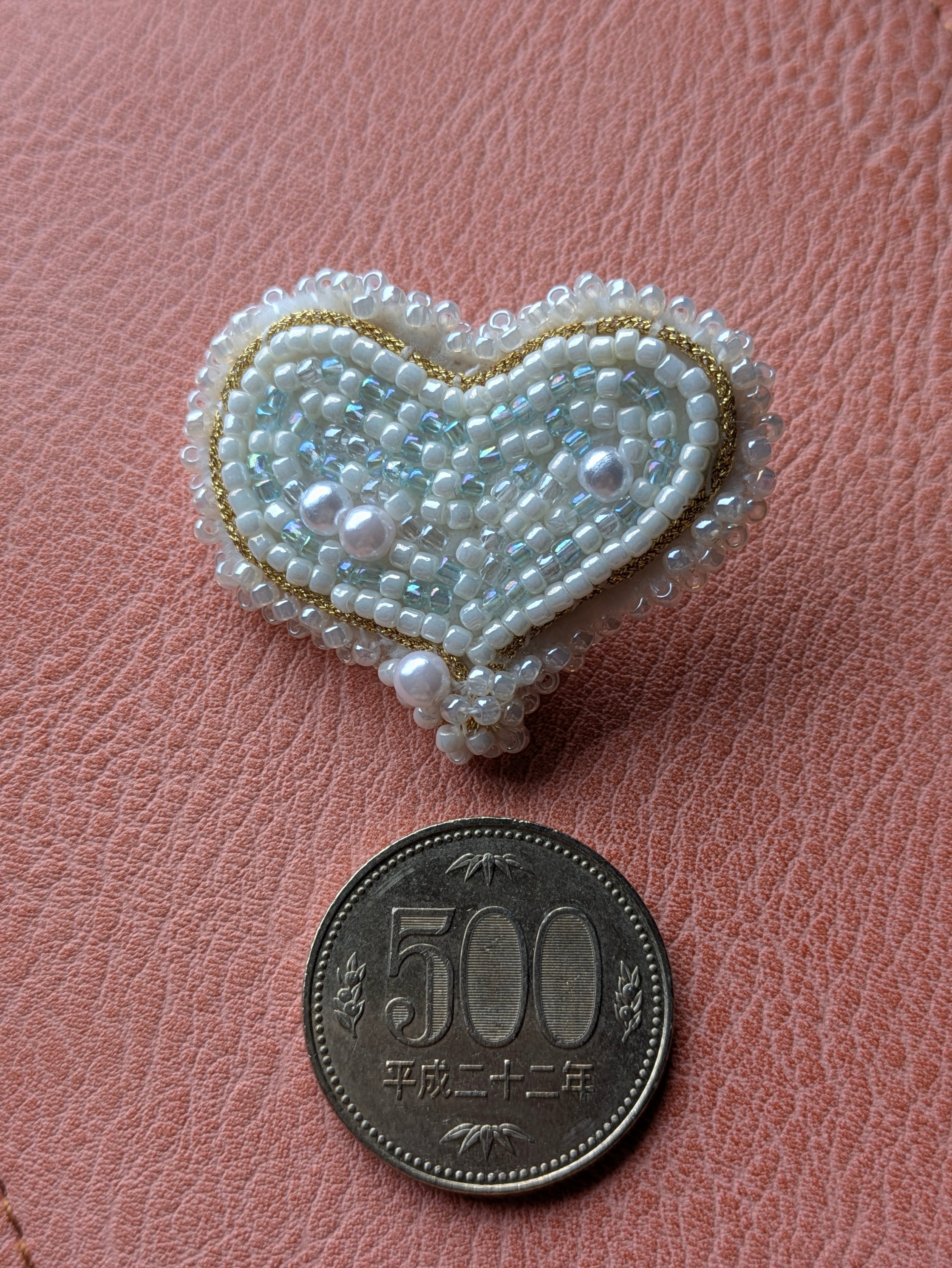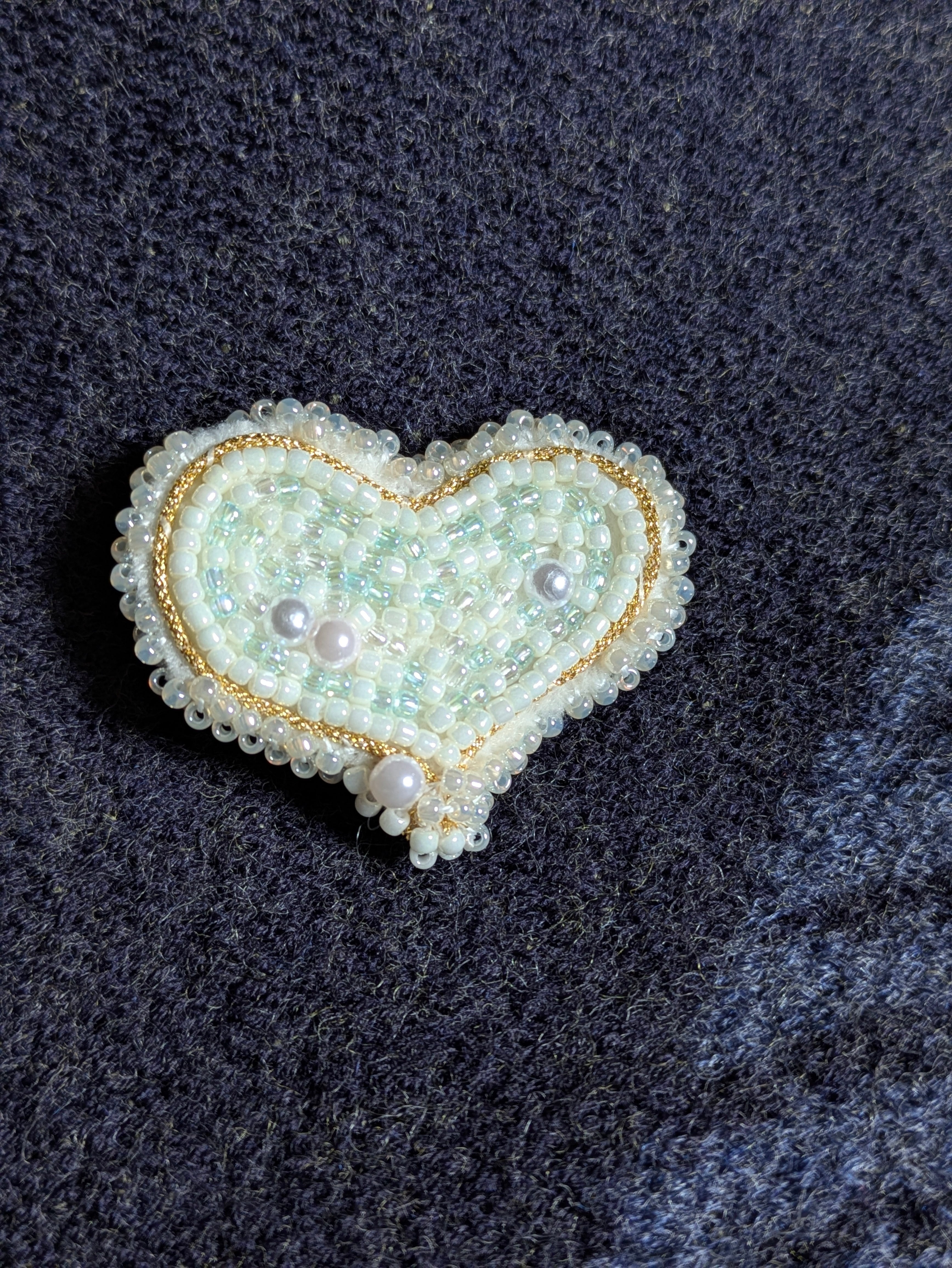 あなたの心を温める、素敵なハートのブローチです。愛情を込めて手作りされたこのアイテムは、普段のコーディネートに華やかさをプラスします。