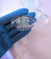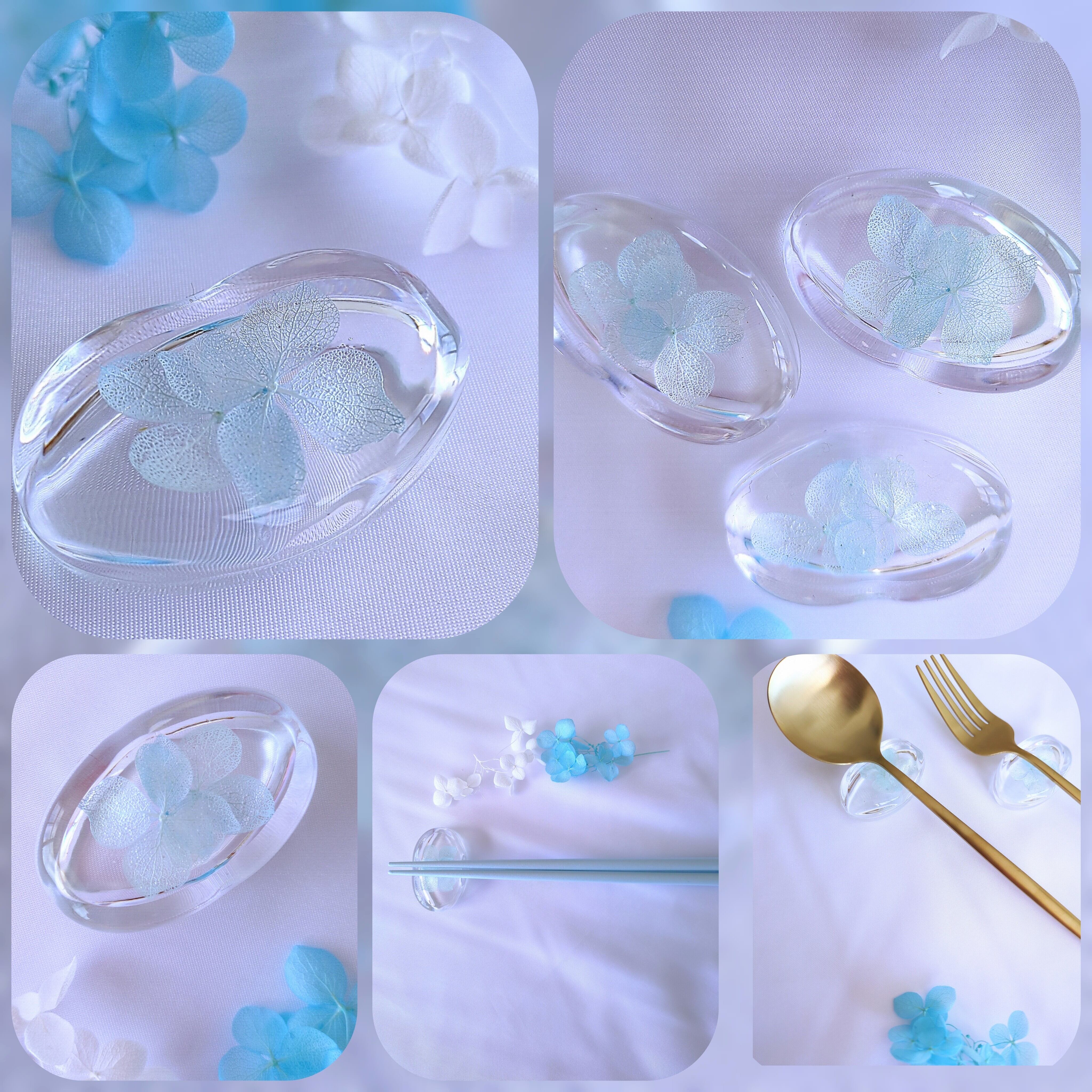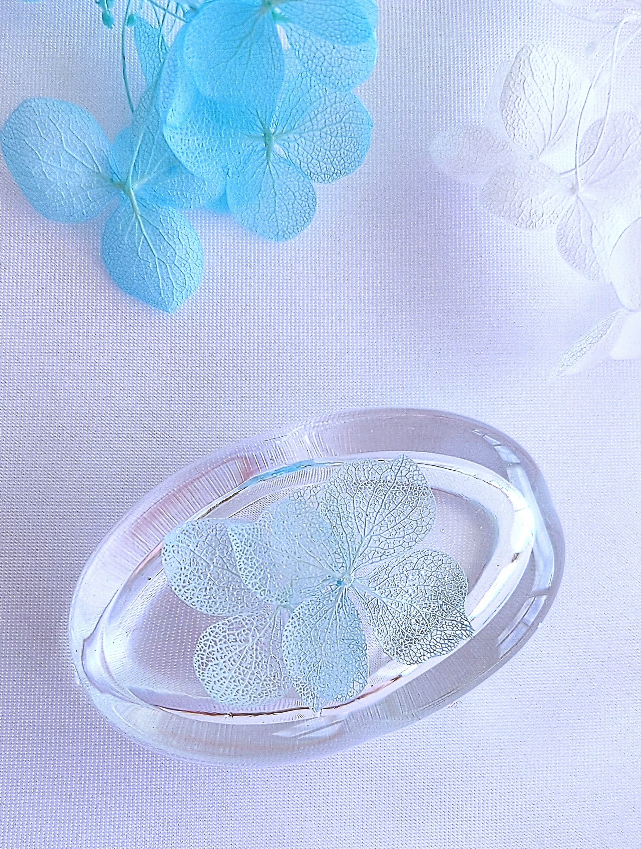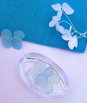 アクリルケースにプリザーブドフラワーの紫陽花をいれ